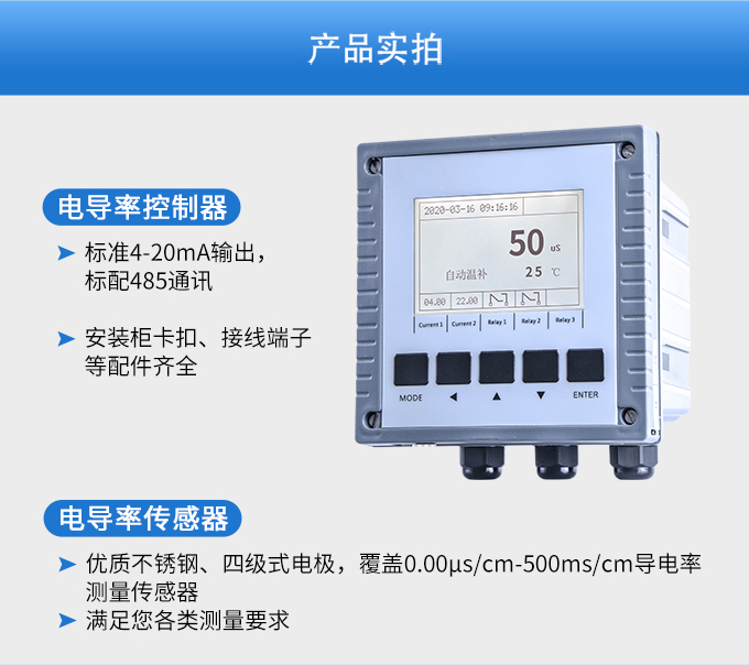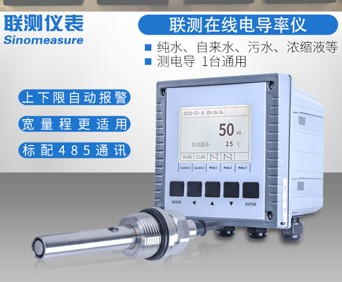 SIN-EC8.0工業電導率儀表,大屏顯示,可對各種工業用水的電導率(TDS)值進行連續測量和控制,本裝置廣泛應用于科學實驗裝備、化工、制藥、環保、冶金、造紙、食品、飲料及供水等行業。根據水工業的環境和特點結合國際供電標準,考慮了特殊環境的電氣設計規范,增加了220VAC供電。